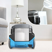 Уникальный водяной фильтр AQUAFILTER c инновационной технологией подавления пыли Wet-JET удерживает 99,99% мельчайшей пыли и 100% пыльцы.